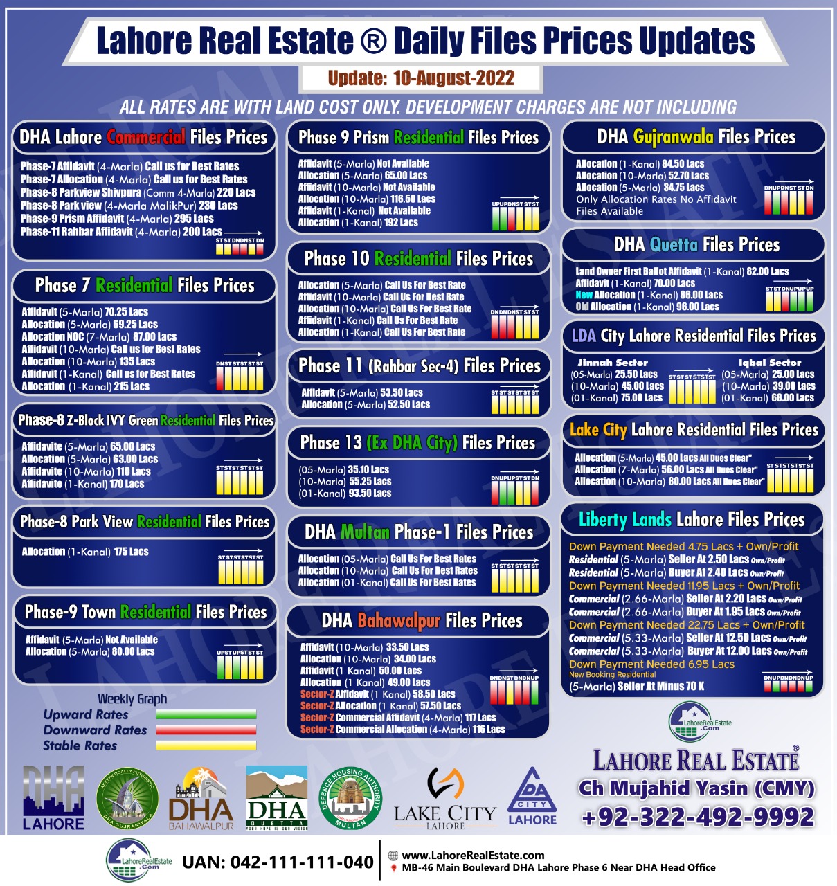 Market Pulse & DHA Files Rates Updates By Lahore Real Estate® August,10,2022
