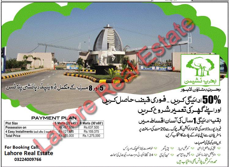 Bahria Nasheman Lahore Commercial Plots For Sale on Installments