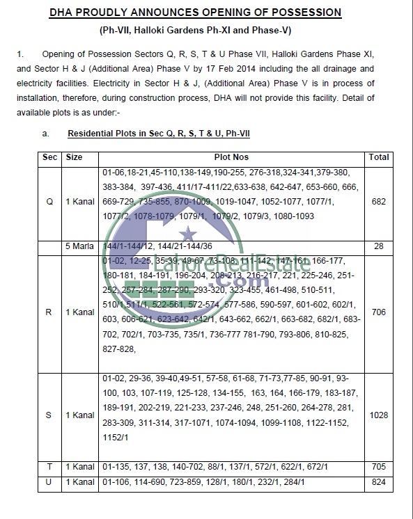 DHA Lahore Phase 7 Halloki Gardens Phase 11 Possession Plot Details