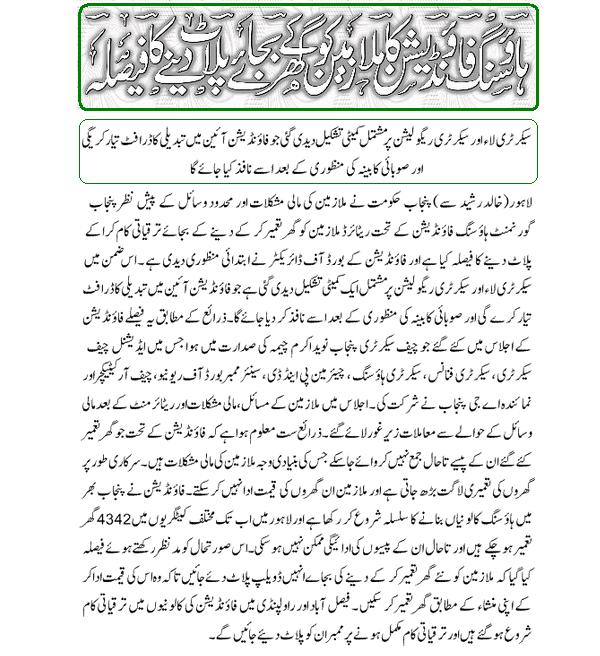 PGSHF Decided to Develop Plots not Houses for Employees