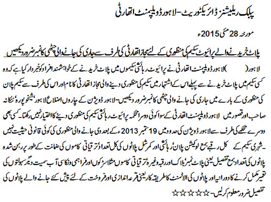 Lahore Development NewsPaper AD
