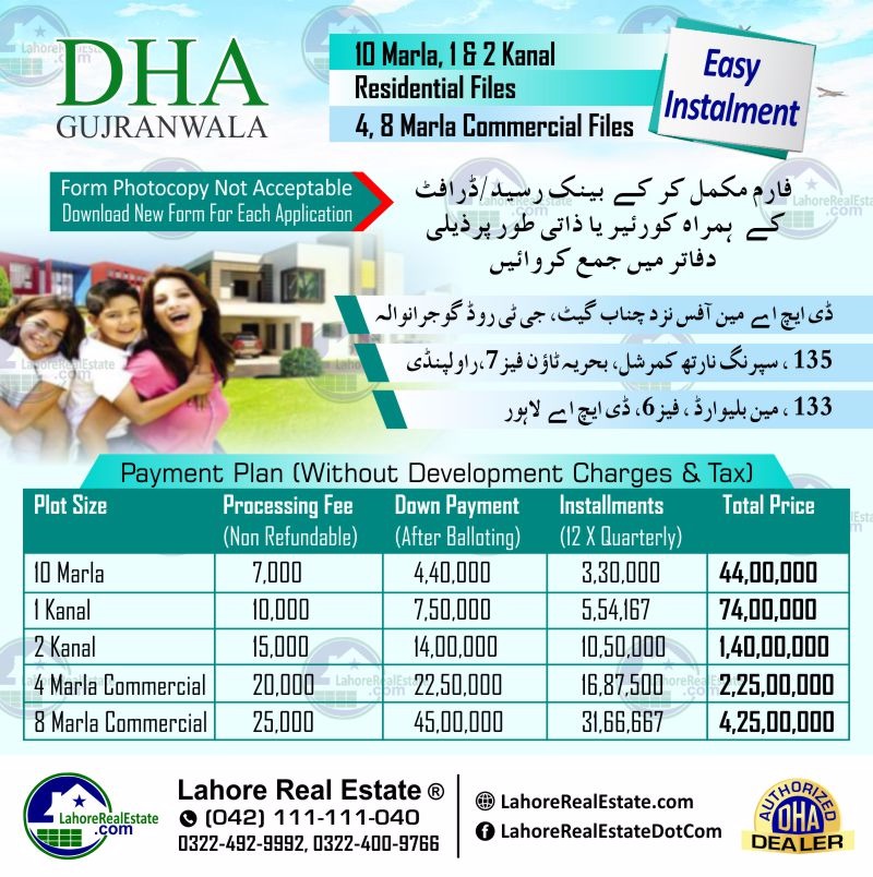 DHA Gujranwala Installment Plots Booking Details