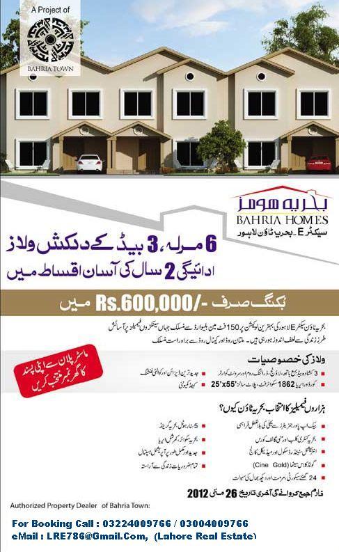 Bahria Town Lahore Sector Bahria Homes Booking E is Open Now