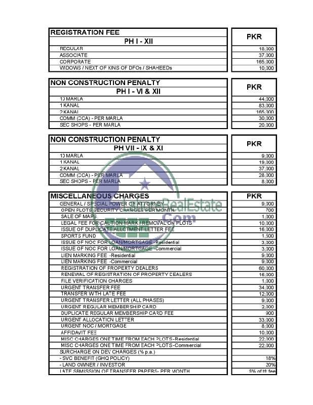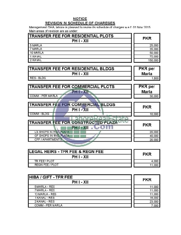 DHA Lahore Management Has Revised Its All Kind of Charges Effective From Nov 01,2015