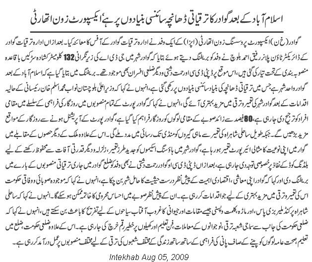Export Processing Zone Authority Delegation Visit Gwadar: Declare Gwadar Infrastructure Scientific after Islamabad - LRE - 08-05-2009 09:48 AM