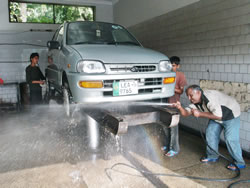 By Muhammad Aayan LAHORE: The city’s service stations – which total in at around 300 – consume a staggering 48,000 gallons of groundwater a day while washing hundreds of cars, according to a Daily Times survey. A service station employee from Gulberg said stations filled their water tanks “round the clock using motor pumps that draw groundwater”, to maintain maximum water pressure while washing cars. “Even if the tanks start overflowing ... the motor pumps are not switched off, because the tanks must always be filled to capacity to maintain maximum pressure in pipes.” A customer, who identified himself only as Imran, said he preferred service stations to washing his car at home because “the water pressure washes away the dirt within minutes ... if I wash the car myself, it takes me more than an hour and there are always stains left behind. I, therefore, get my car washed at a service station twice a week,” he said. Another service station employee said, “I have been doing this job for six years now, and have washed thousands of cars ... we have always had plenty water to waste. Our station is on a main road, and customers start arriving early in the morning. Normally, we wash 22 cars before midnight.” He said station employees also “play water games, especially in the summers when the temperature is really high”. “We also use water to wash the service station and pieces of cloth used in car washing ... 50 gallons a day are easily wasted doing this. Frankly, we are too tired to be guilty about wasting water,” he said. While the high-pressure water pipes used by service stations can easily fill a two-gallon container within 10-15 seconds, the pipes are kept running for at least five minutes for each car. A complete car wash takes around 15 minutes, and during the entire process, more than 12 gallons of water are used. Sami Khan, chairman of All Pakistan Petrol Pump Association, told Daily Times, there were more than 700 petrol stations in Lahore, and most of them offered car-wash services. “Water wastage can be countered by the men who wash the cars. It’s very difficult to monitor water wastage at every station ... it’s only up to the workers”, he said. A service station manager, Asad Shah, said business was not the same as it was a few months ago because of load shedding. “Load shedding has affected our business really badly.” |