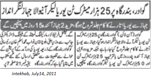 Lifting of imported urea from Gwadar port: TCP protests against NFML |