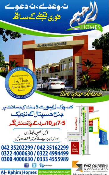 Lahore :Al Rahim Homes Near Jinnah Hospital