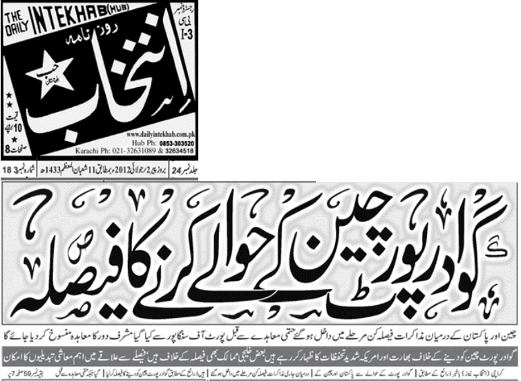 China to Take Over Gwadar Port on Aug12, 2012 |