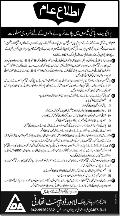 | LDA has advised the intending buyers of plots in private housing schemes | Salman | 0 | 4,395 |