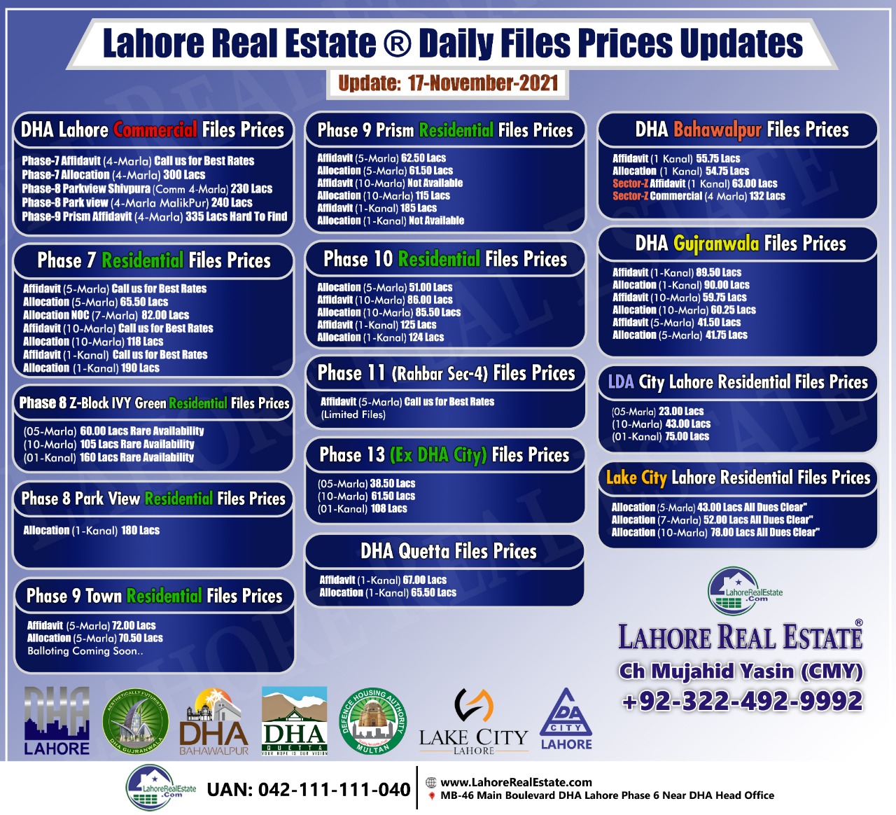 Market Pulse & DHA Files Rates Updates By Lahore Real Estate November,17,2021
