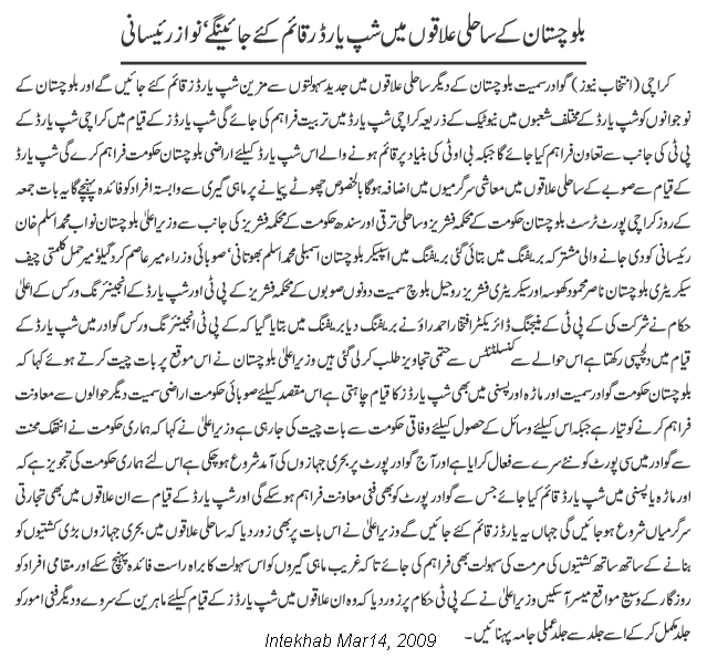 Federal Cabinet Briefed on Baluchistan/Gwadar |