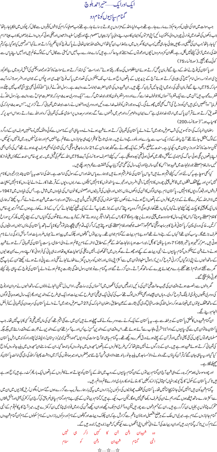 Army Not a Solution! (Javed Ch) |
