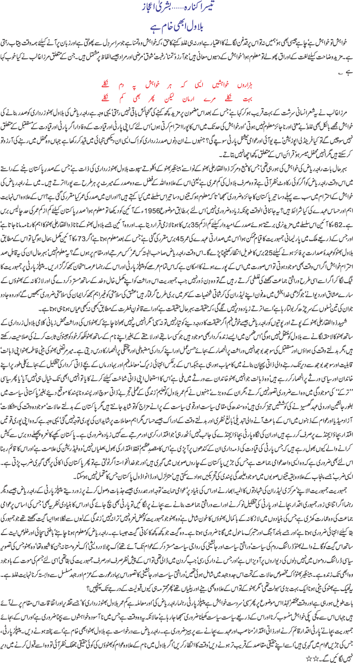 Bilawal to Attend Zardari-Brown Meeting ( a cartoon) |